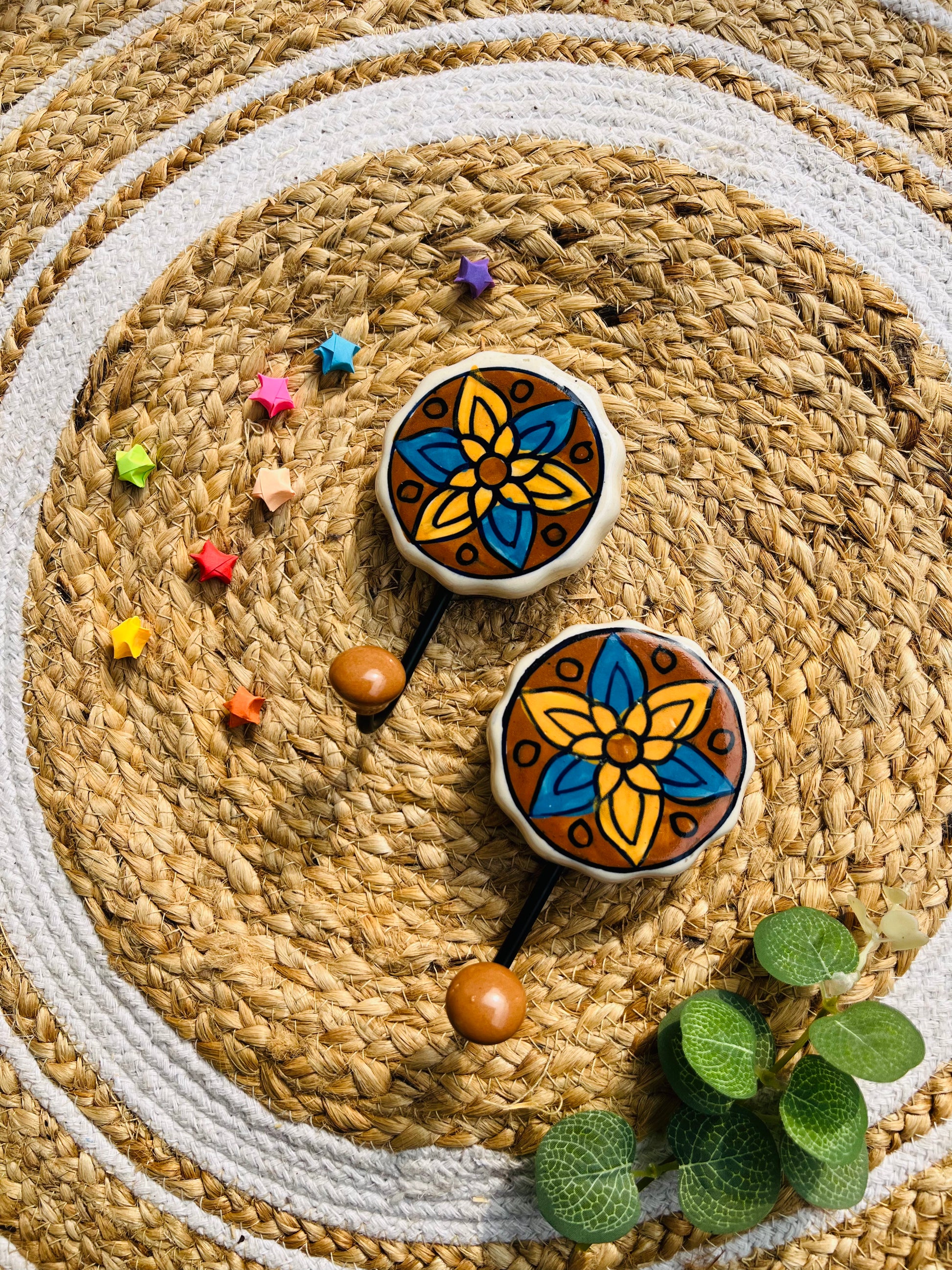 Inspired by the rangoli we grew up with, this hand-painted ceramic hook adds joy and colour to everyday corners. Each piece is unique, made with love, and meant to bring a smile every time you walk in.